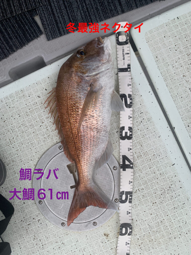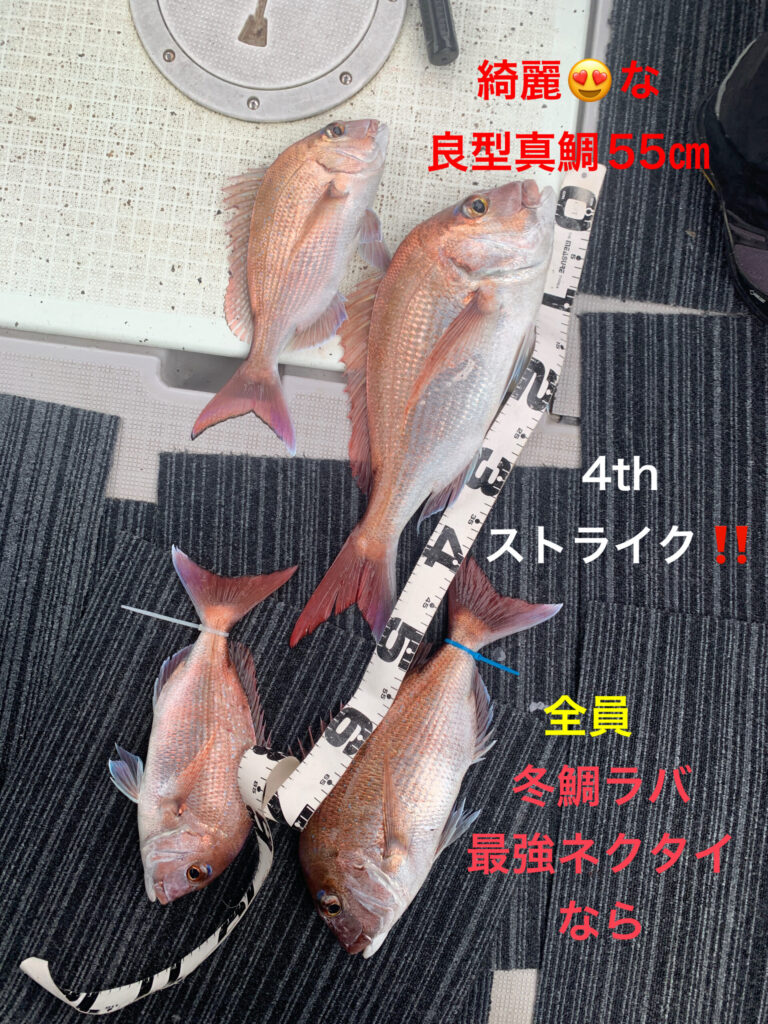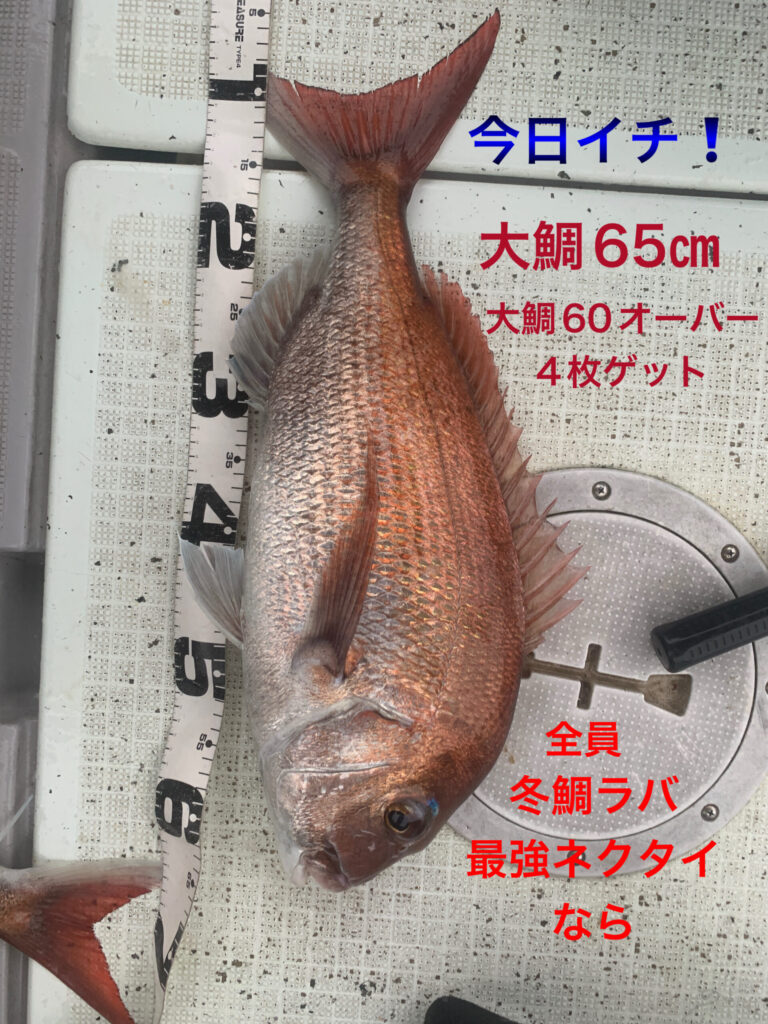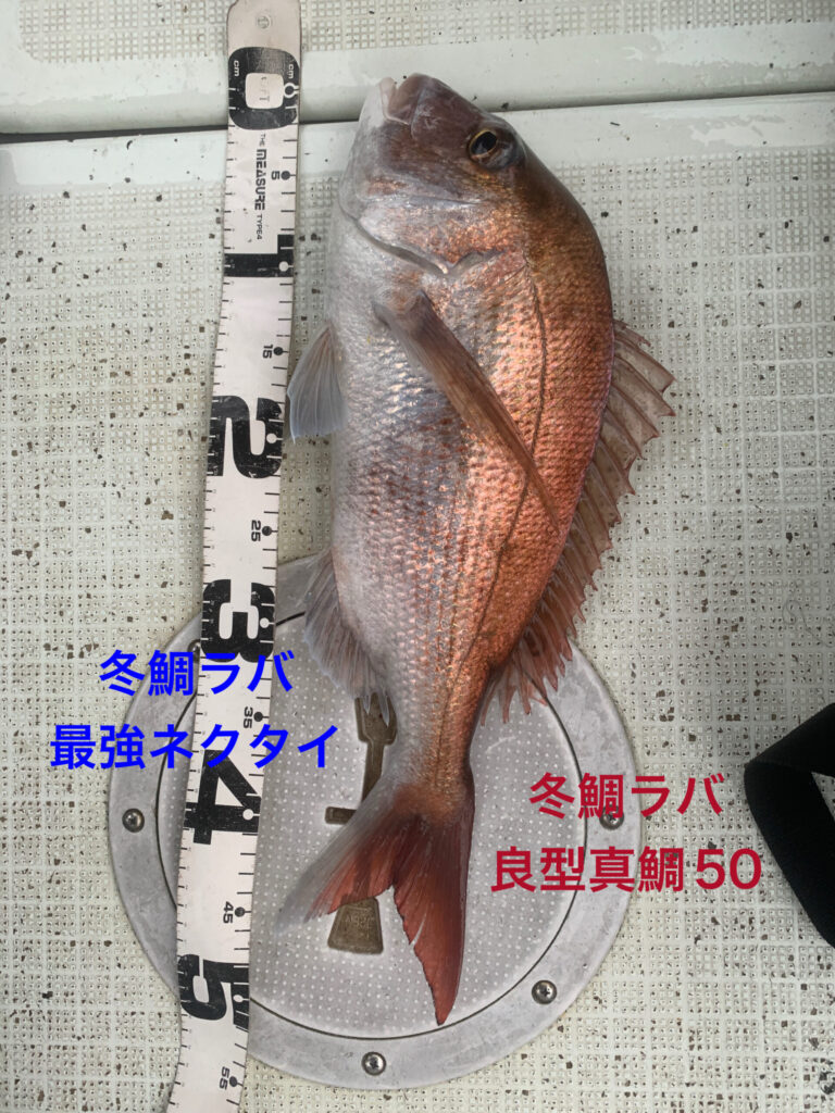 海水温低下のこの時期、過去10年間越冬真鯛海域、西海域でもストライク実釣行実績No.1の冬鯛ラバ最強ネクタイ1種のみ、今日も全員この冬最強ネクタイ1種で朝イチから2時間、前回よりサイズアップな大鯛や良型真鯛が釣れ続き絶好調🥳👏😊