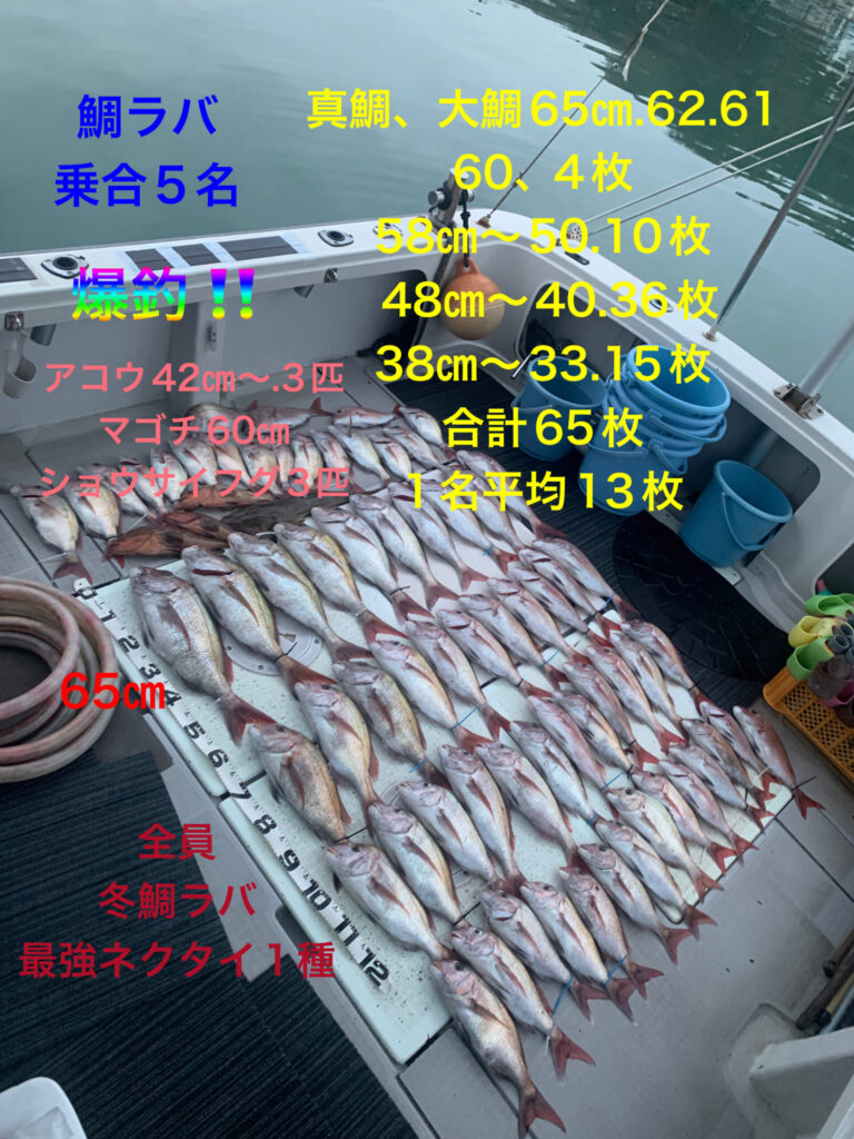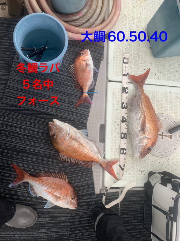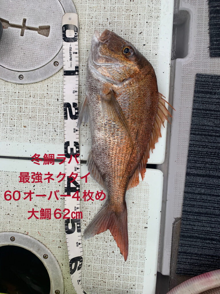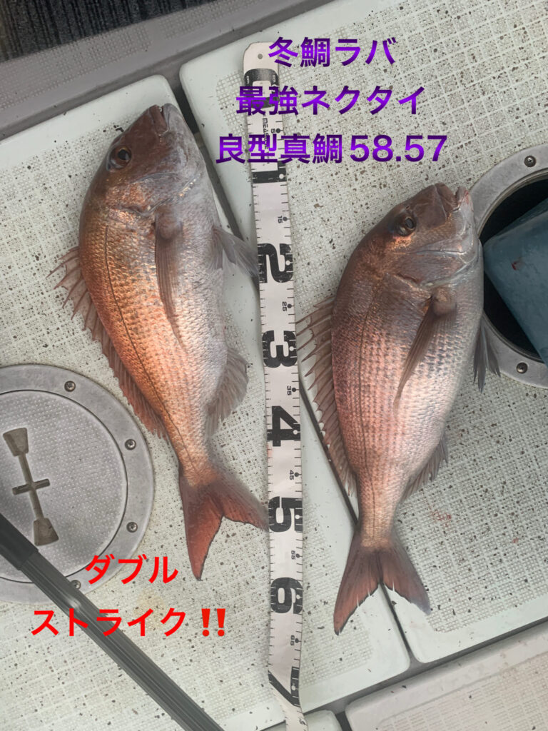 海水温低下のこの時期、過去10年間越冬真鯛海域、西海域でもストライク実釣行実績No.1の冬鯛ラバ最強ネクタイ1種のみ、今日も全員この冬最強ネクタイ1種で朝イチから2時間、前回よりサイズアップな大鯛や良型真鯛が釣れ続き絶好調🥳👏😊