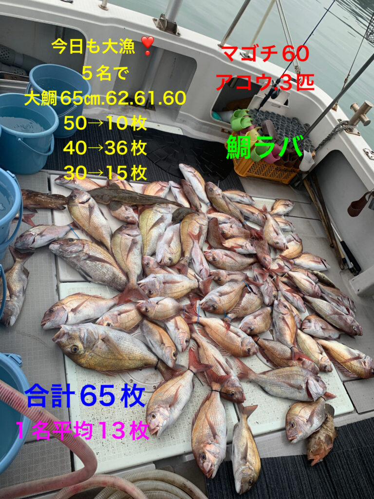 真鯛、大鯛65㎝.62.61.60、4枚