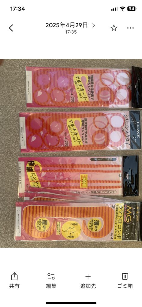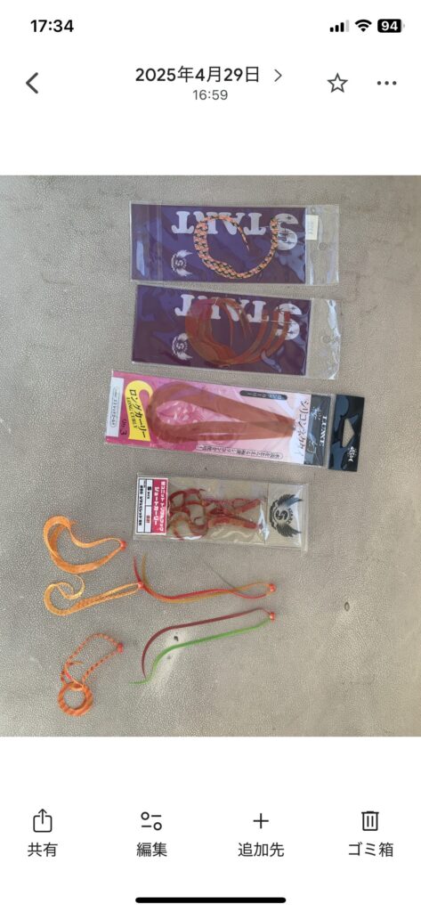 今年の鯛ラバ、ビッグネクタイと極細ネクタイ、昔のオレンジストレートネクタイ(普通)のデカ目と超ショボネクタイの2〜3種類、また、匂い付きワーム(イカタコカーリー赤)、ジャッカル鯛節赤ゴールドストレート、流れが緩い時の鯛ラバネクタイに当たりが落ちた時に裾針にマイクロコイカ、シマノのゲジゲジ型赤ワームと細めストレートネクタイ形に切ったホロシートの合わせも過去1人勝ち🏅パワーも産んでます🤗