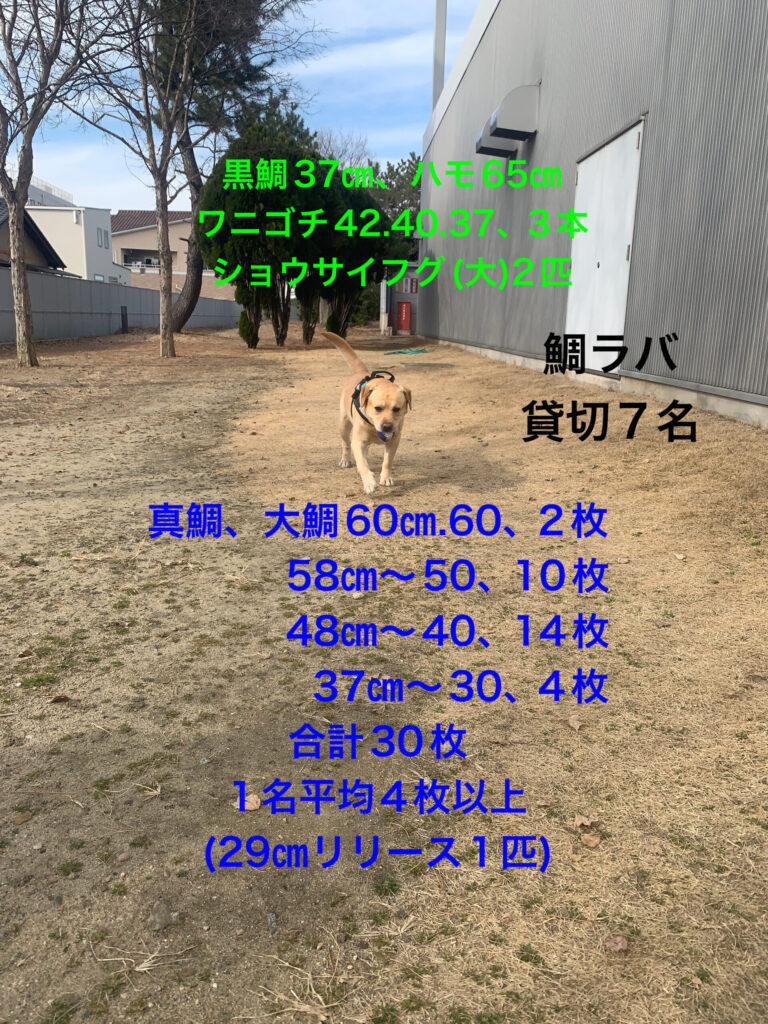 1日早い本日の潮アジロでしたが、合計30枚中、大鯛60㎝を2枚、良型真鯛50が10枚、30は4枚迄と型揃いの嬉しい鯛ラバ釣行と成りました🤩😆🎉👏