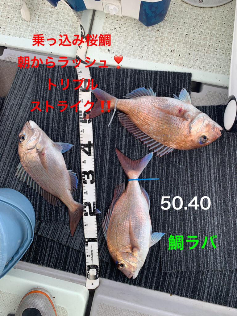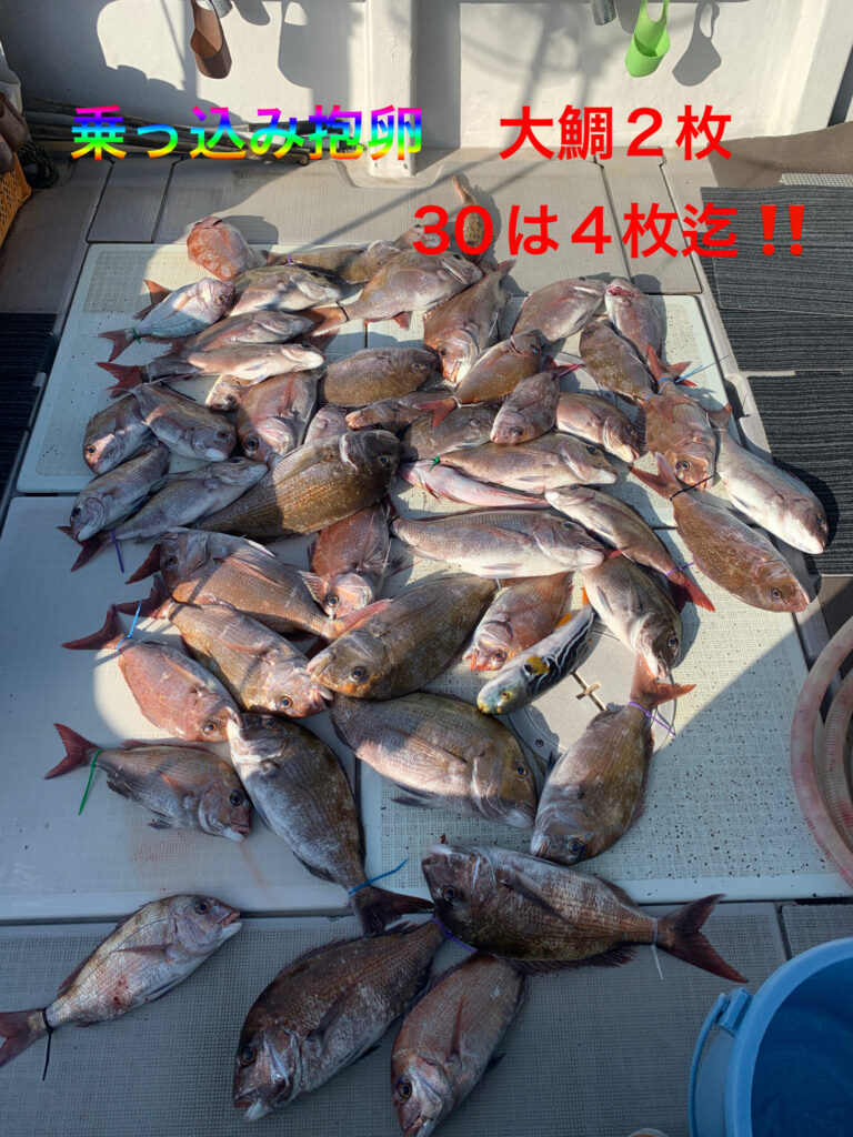 朝イチから大当たり🎯、良型抱卵桜鯛50〜40がダブル.トリプル〜、30真鯛でも抱卵雌が釣れ今がピークの乗っ込み桜鯛❗️
