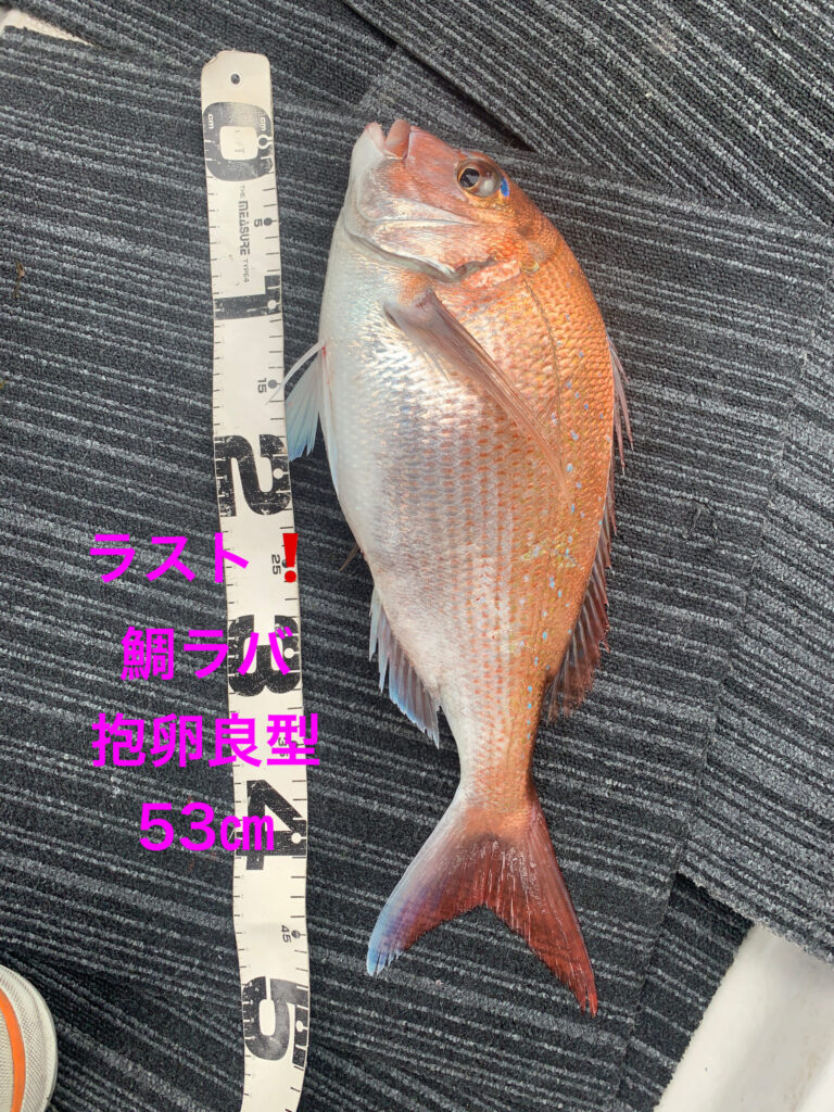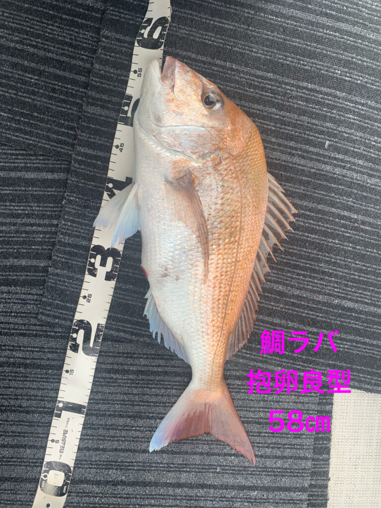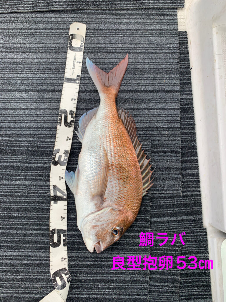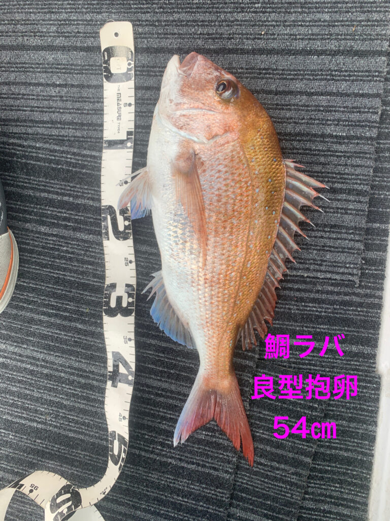 本日は初鯛ラバ挑戦の2名様が朝イチから今日イチ大鯛63㎝雄良型抱卵桜鯛53㎝雌をダブルストライク‼️